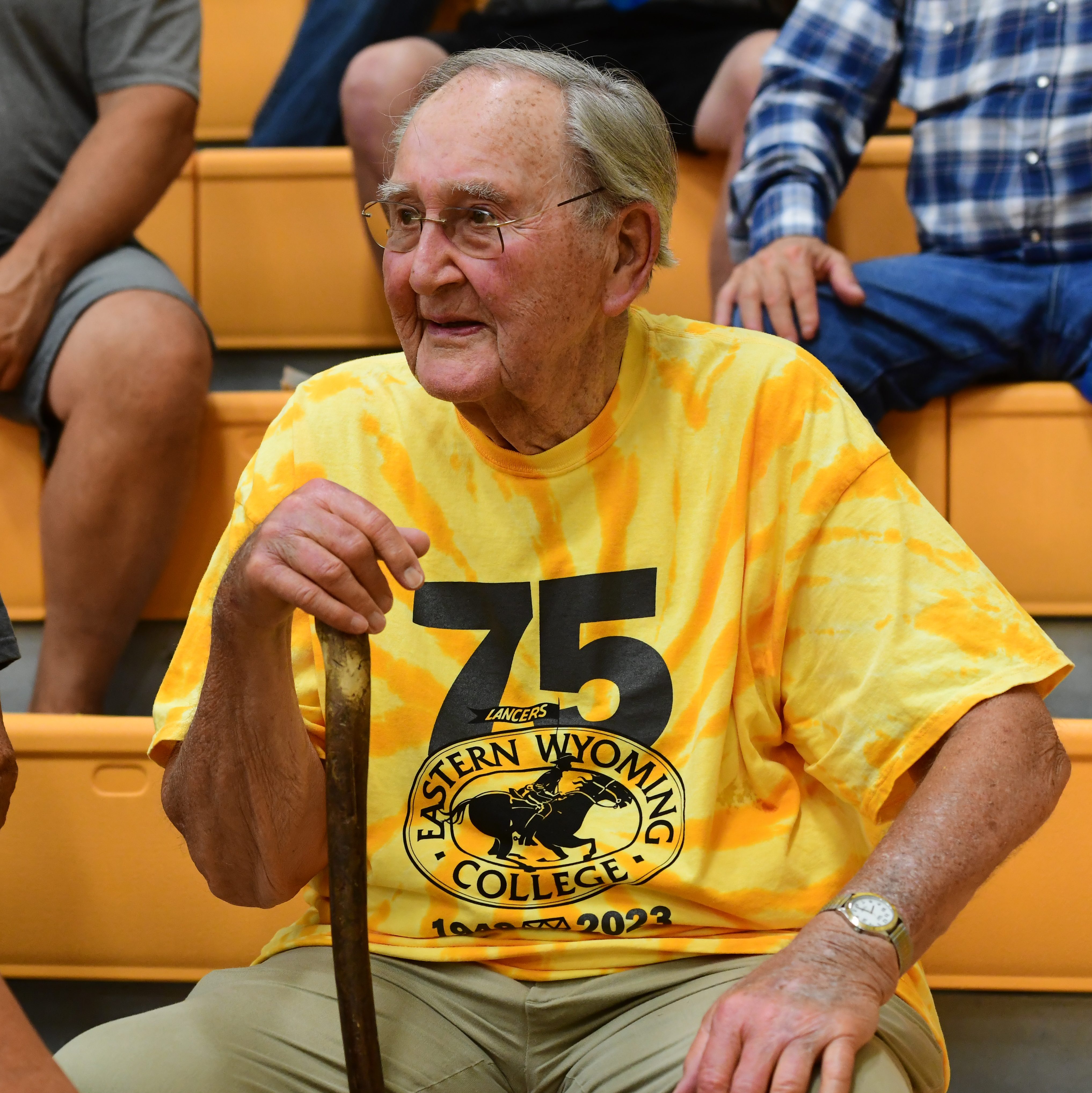 On Aug. 29, 2023, hundreds of Eastern Wyoming College alumni and Torrington community members flooded the CTEC parking lot on campus for a community tailgate event to celebrate the college’s 75th anniversary. Among them, former instructor, dean, registrar and president Guido Smith donned a bright yellow 75th anniversary t-shirt and one of his widest grins.