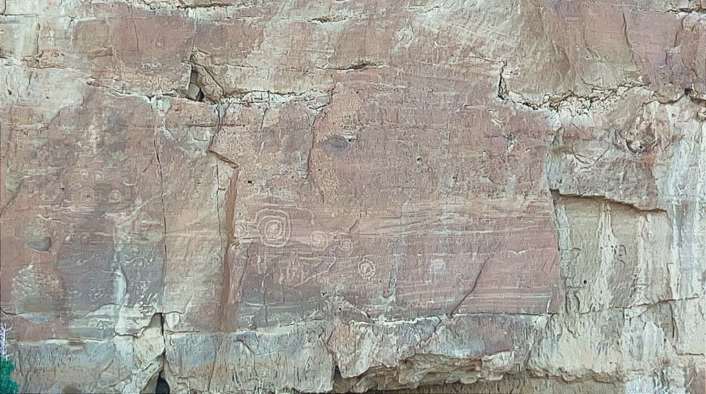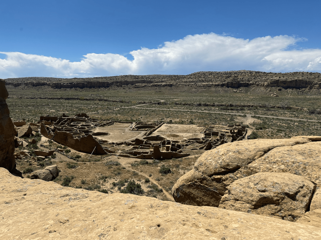 We started early and had the canyon to ourselves. Warmed up by hiking around Chetro Ketl and Pueblo Bonito and then headed up to hike the Pueblo Alto loop. It was beautiful – perfect weather, blooming cactus and Indian Paintbrush, ruins, petroglyphs, and lots of lizards.